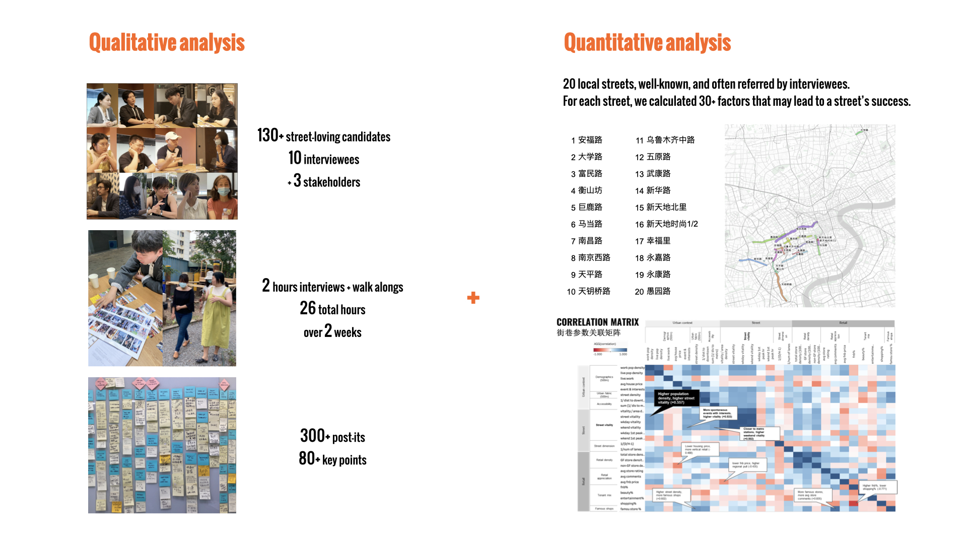 User Interview Transcripts, POI Data, Street Network, Retail Tenant Data