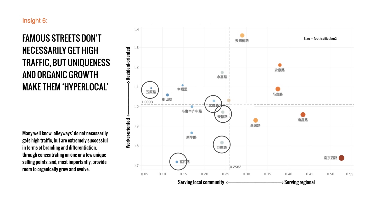 The study combined qualitative interviews to build consumer profiles with quantitative cluster analysis across 20+ commercial streets. By evaluating tenant mix, pedestrian flow, and accessibility, the research introduced the “Traffic Pull” concept. This provided a data-driven framework for customizing marketing strategies and optimizing retail compositions.
